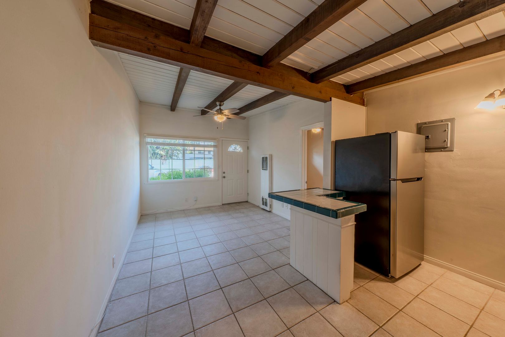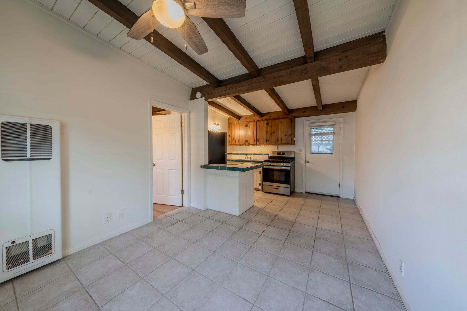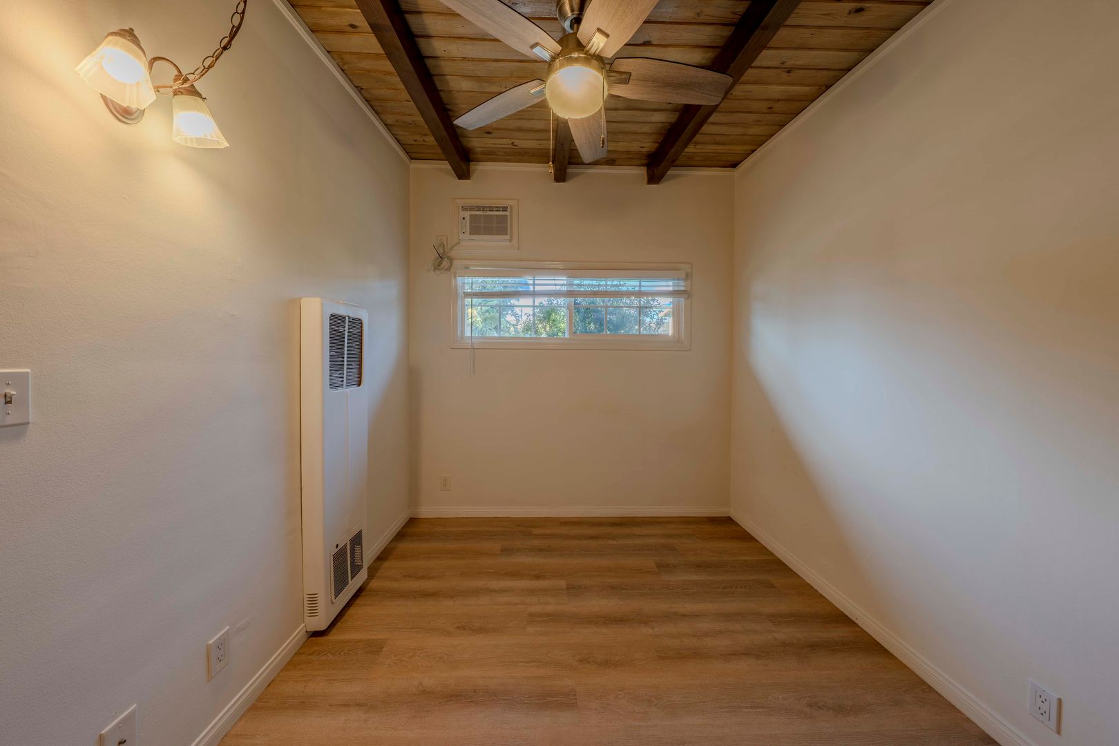 This is a very cute and charming single story full one bedroom/ one bath in the VERY BEST AREA OF EAST COSTA MESA. The home is smaller, but it is not an efficiency as it has total separation and privacy between the living room and the bedroom. That is very important for privacy reasons. Rustic, charming wood ceilings and cabinets give a feeling like it is a cabin in Big Bear. Single story with no one above you or below you. A lot of charm and under your control. Assigned parking for one car steps from your front door.