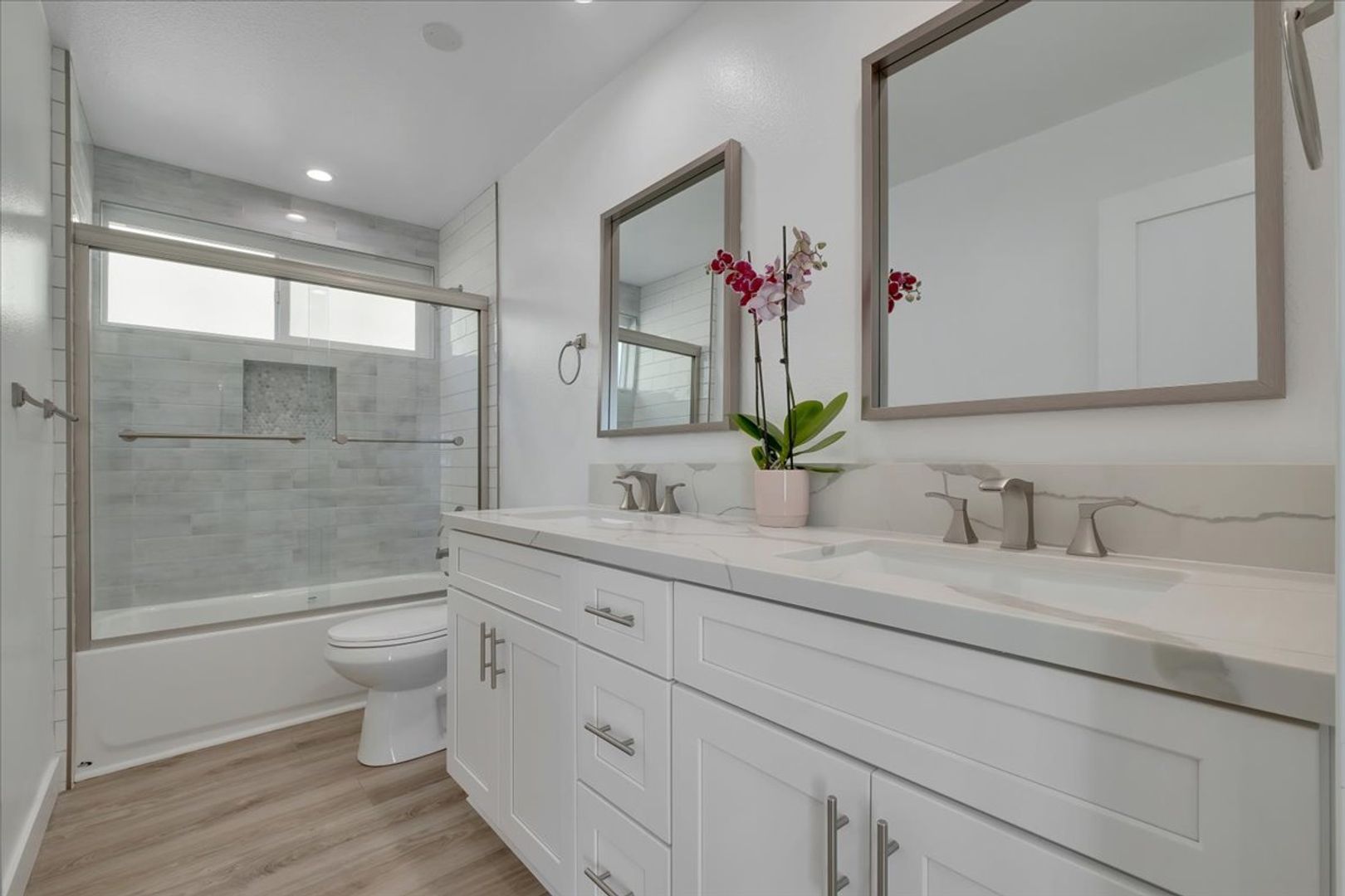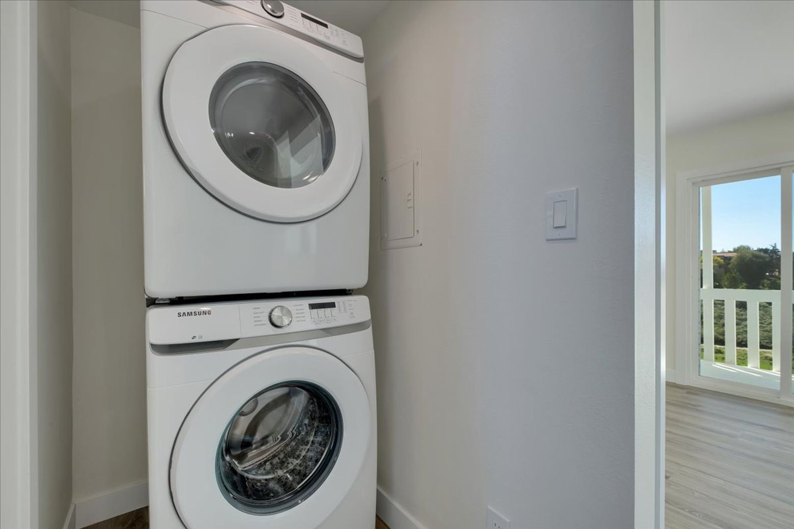 3 years new- Wall to wall remodel with an endless list of NEW features! NEW kitchen with white Shaker self-closing cabinets, quartz counters, and Samsung stainless-steel appliances including refrigerator, gas oven/range, microwave, dishwasher, and full-size gas washer and dryer. NEW bathrooms with matching cabinetry and counters, double sinks, designer tile, rain shower head with handheld, brushed nickel fixtures, low-flush toilets, and new tub/shower. NEW wood-style 100% waterproof vinyl flooring throughout including stairs. NEW interior Shaker-panel doors and closet doors with matching baseboards. NEW dual-pane windows, two 8′ sliders, and NEW 16′ stacking La Cantina doors opening to a 4′ × 23′ deck featuring a 21′ quartz eating counter and two outdoor electric heaters—ideal for outdoor dining with breathtaking views.