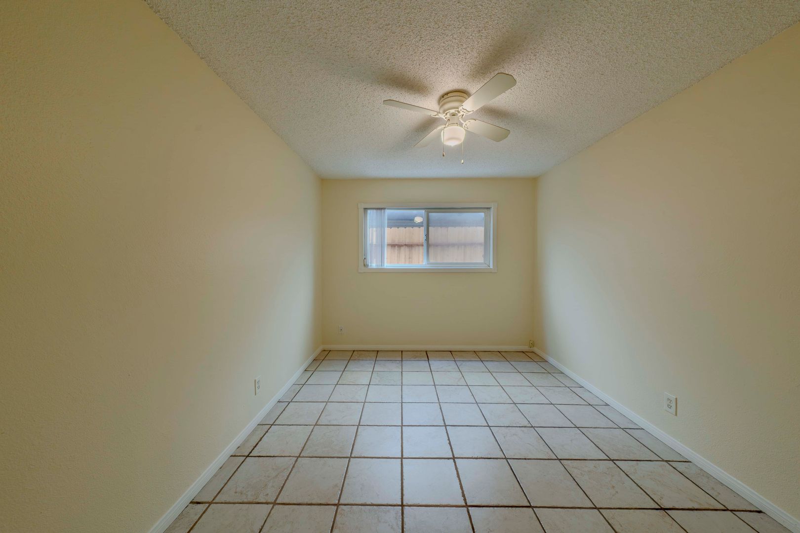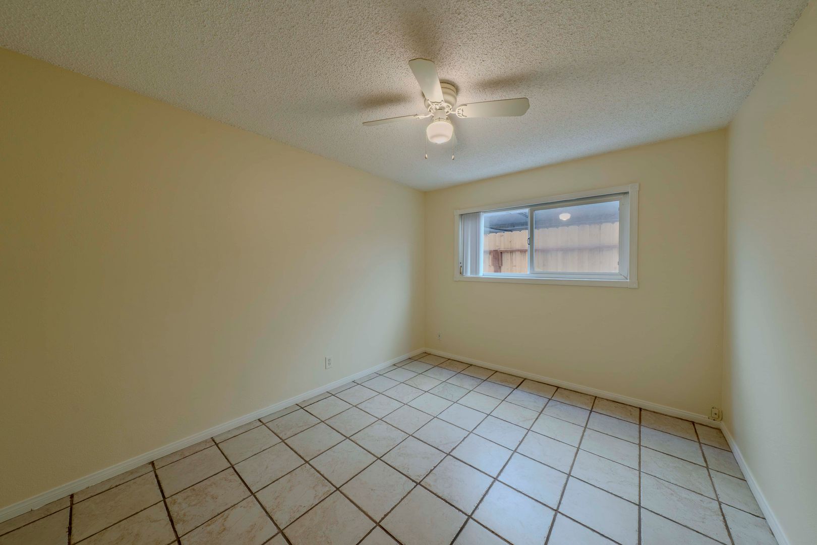 The primary bedroom is a true retreat, boasting upgraded tilework and a ceiling fan for your comfort.