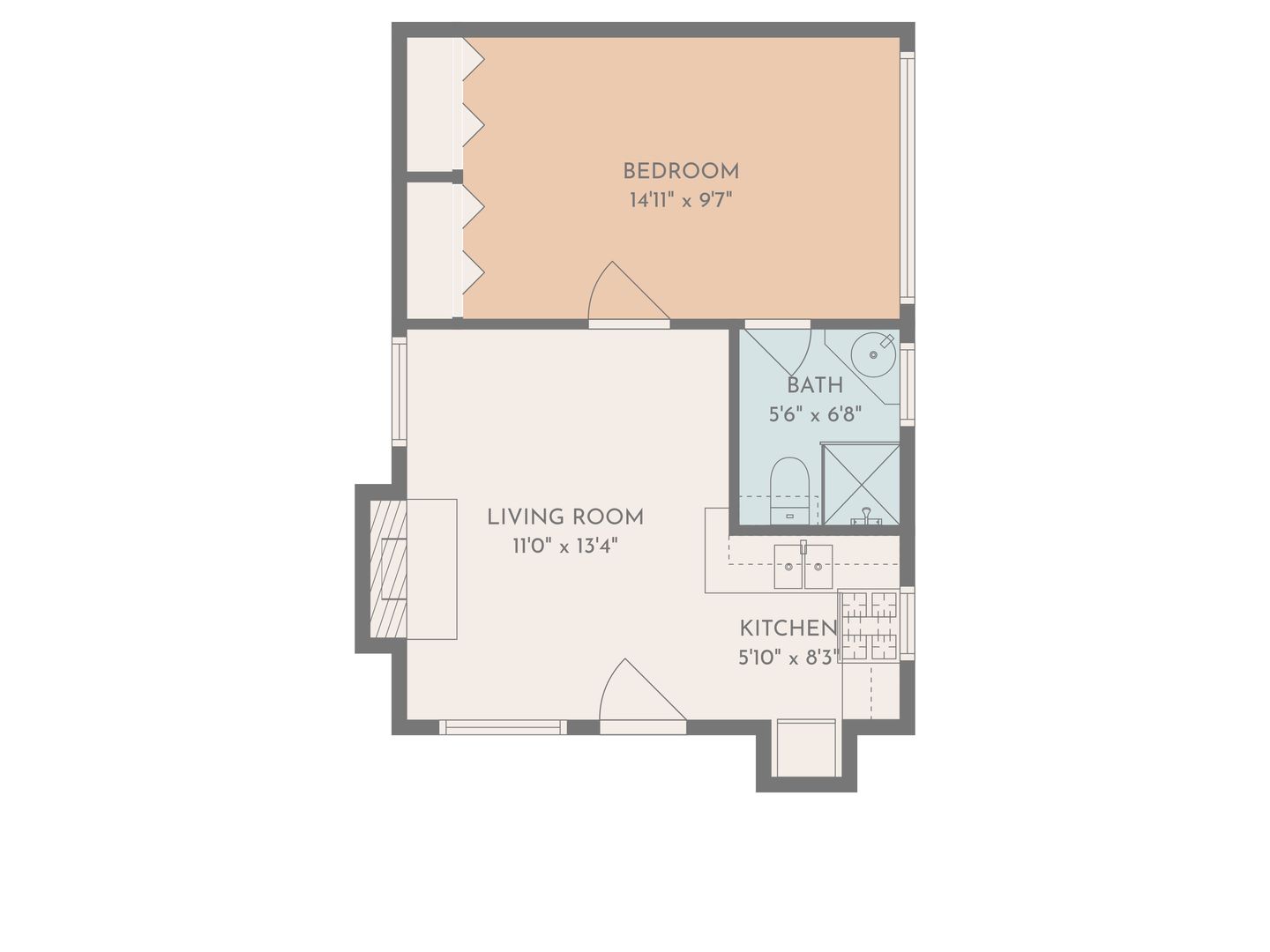 The home is a really cute single level (no one above or below) house like property with a small private yard perfect for a book and good glass of wine. It is very cute and in a great top of the line thirteen home community of all single story properties. The complete one bedroom home is a bit smaller, but has so many pluses that it almost always rents instantly. Very private and unique. Extremely house like feeling.